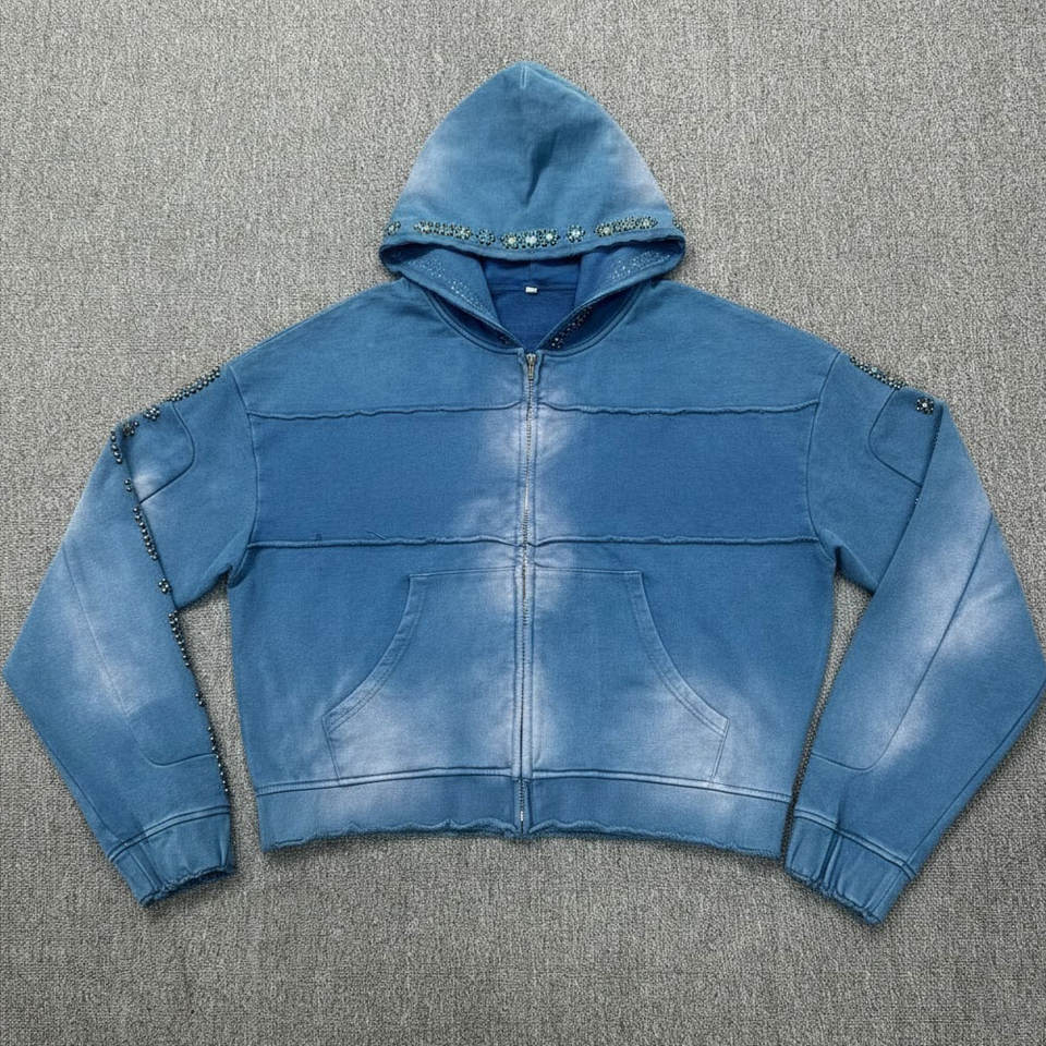 Sudadera con Capucha Personalizada para Hombre con Pedrería, Acabado Deslavado al Sol y Estilo con Cierre de Cremallera