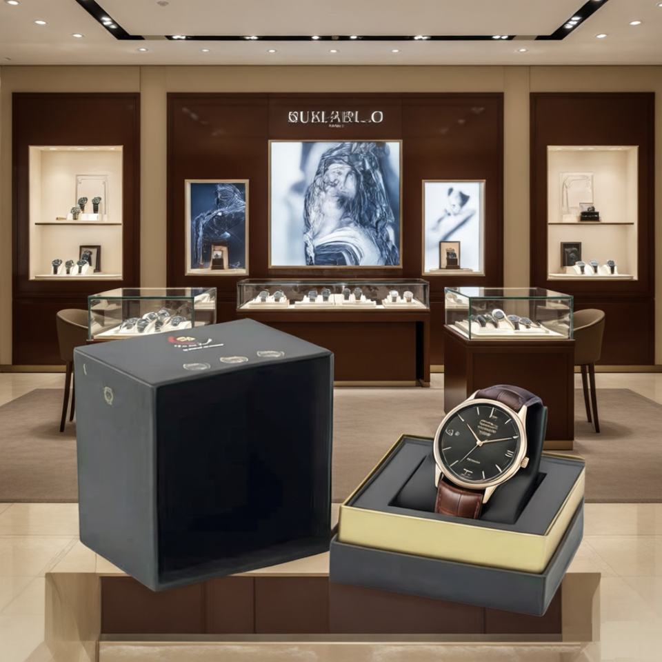 Caja de Cartón Ecológica, Reciclable y Biodegradable para Relojes, con Forro de Esponja y Materiales Reciclados, Diseño Personalizado