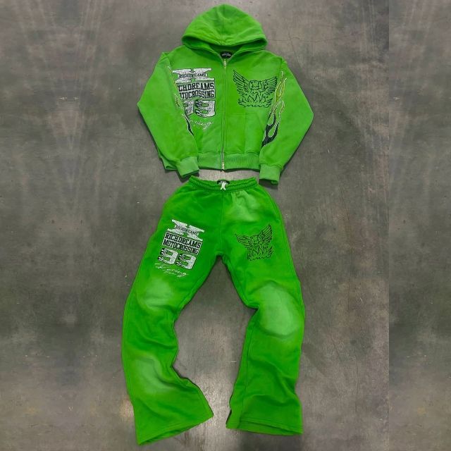 Conjunto de Sudadera con Capucha y Pantalones Deportivos de Algodón Grueso para Invierno, Corte Regular, Unisex, Personalizado, con Estampado Puff, Lavado Ácido, Pedrería y Transpirable