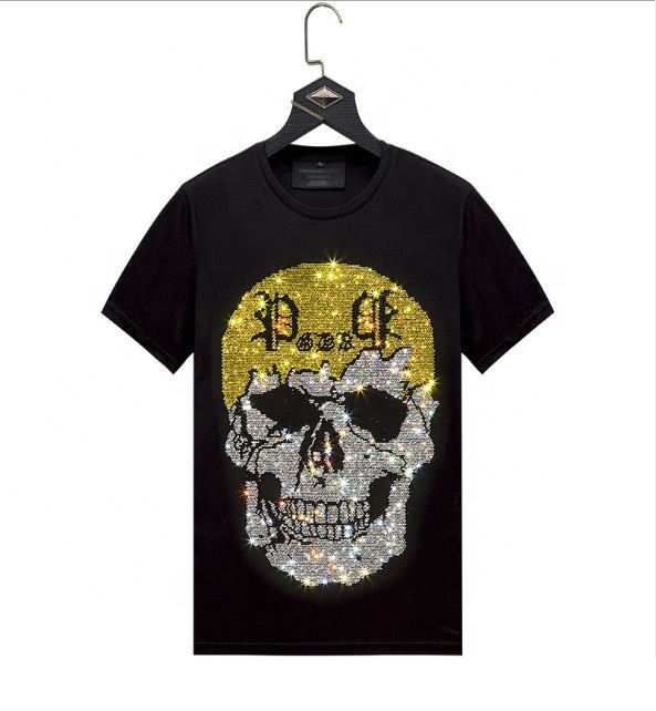 Camiseta Personalizada con Gráfico de Calavera y Pedrería, a la Moda, al por Mayor para Hombre