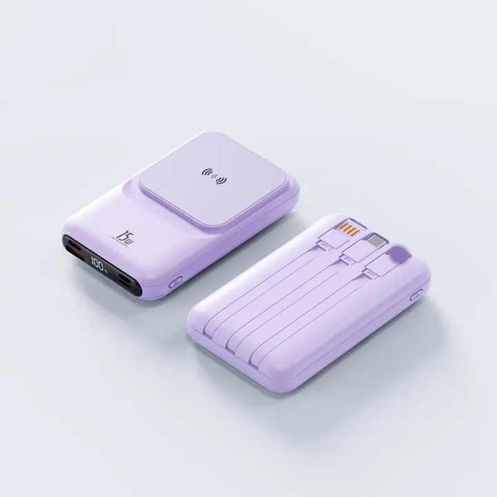 Banco de Energía Portátil Magnético Inalámbrico de Carga Rápida Personalizado de 10000 mAh con Cables Integrados y Soporte