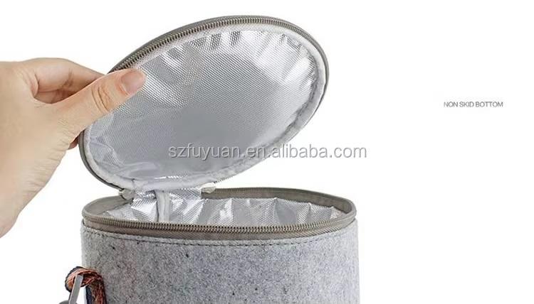 Fiambrera con aislamiento de fieltro personalizado, bolsa de hielo portátil, cubo redondo, bolsas de hielo, bolsas de mano para pícnic al aire libre, bolsa térmica suave