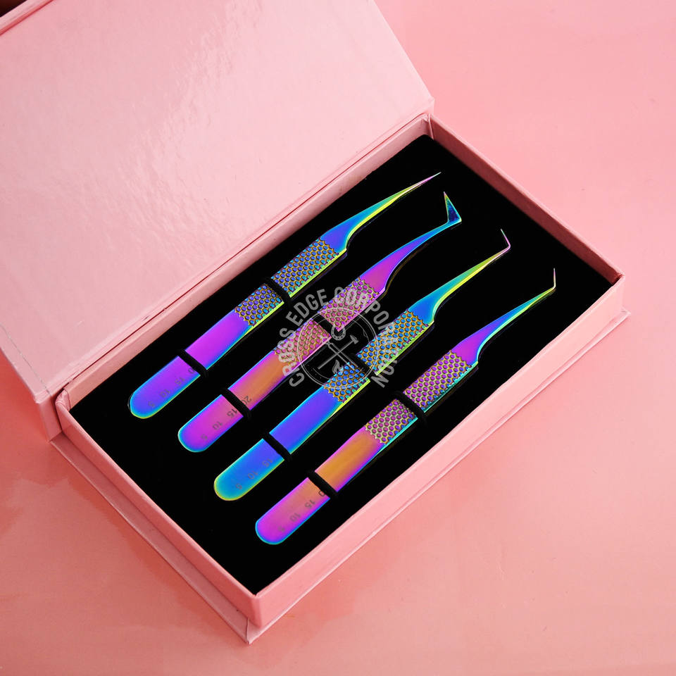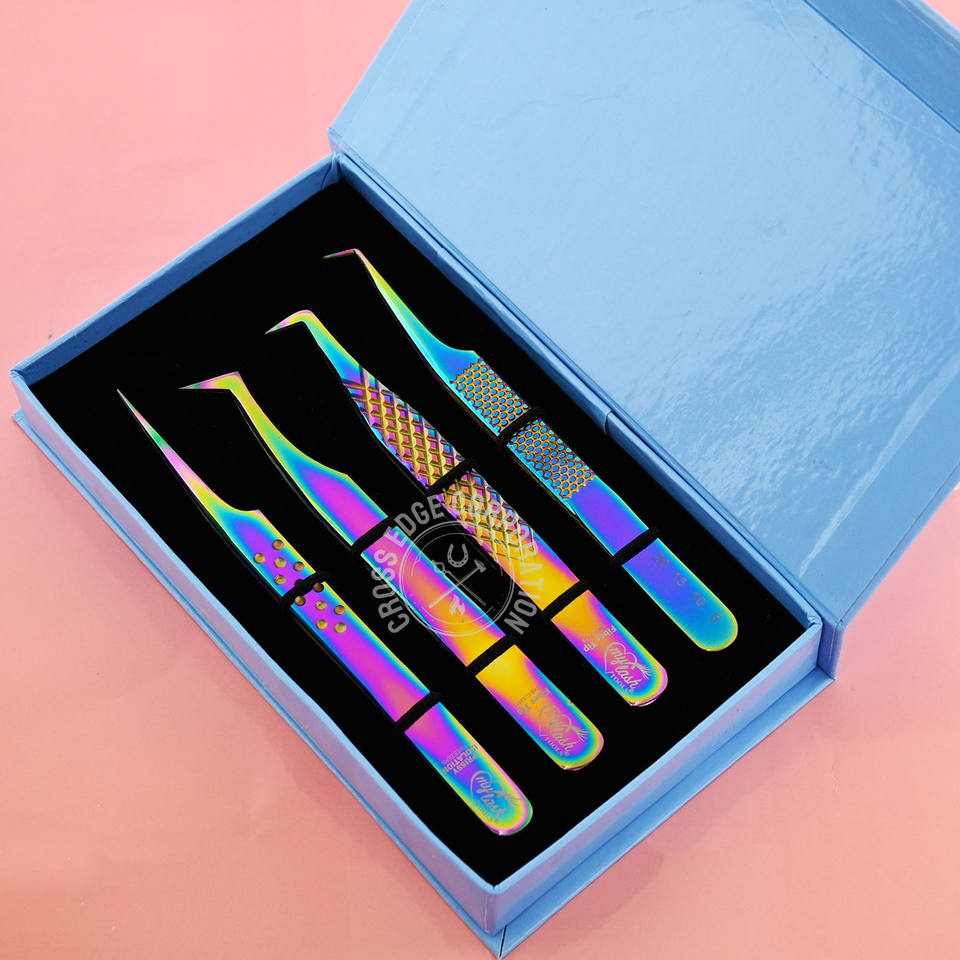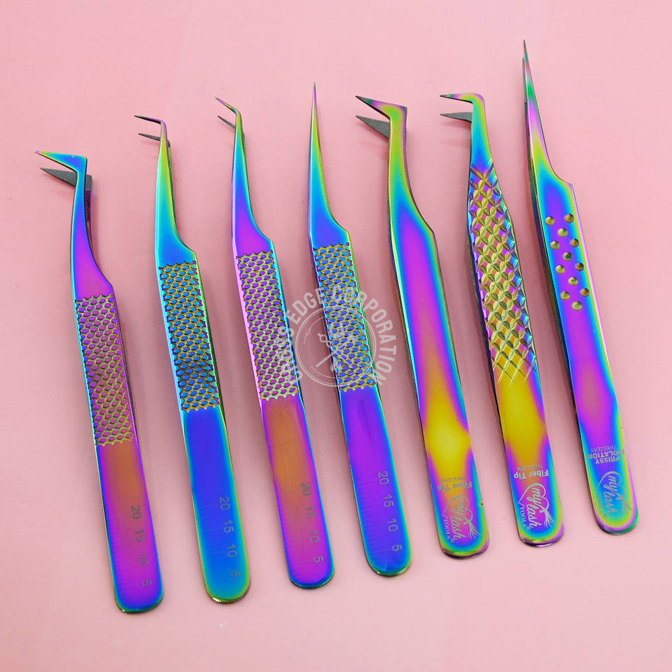 Pinzas personalizadas para extensión de pestañas con aislamiento de punta de fibra, volumen de pestañas, pinzas finas X, aplicador de acero inoxidable de 90 grados