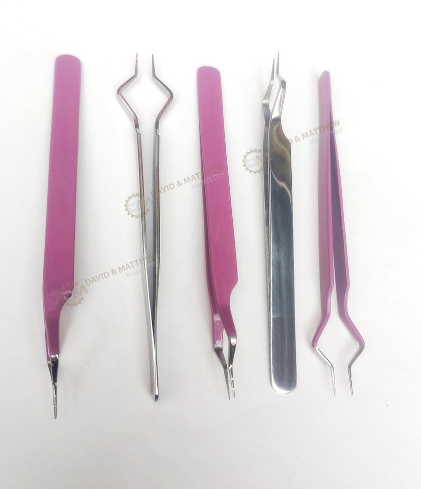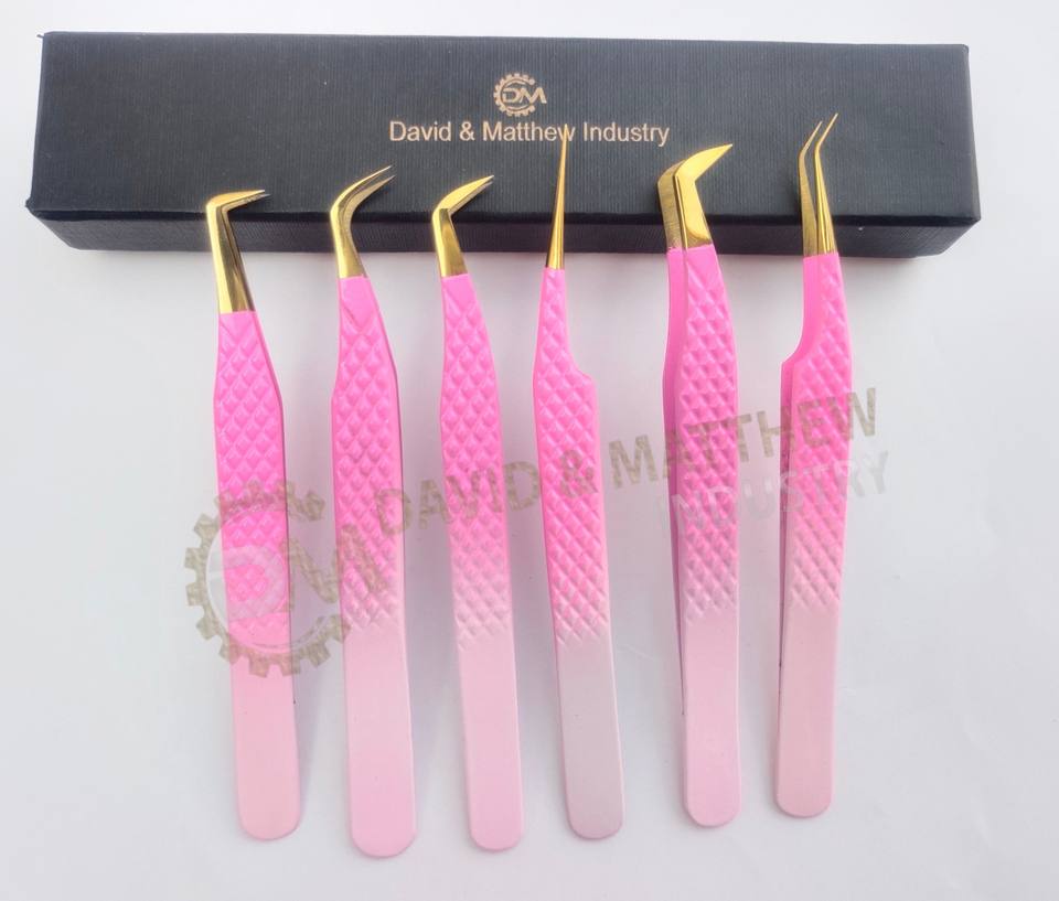 Pinzas de pestañas de punta de fibra personalizadas Pinzas de extensión de pestañas de acero inoxidable Pinzas de pestañas de volumen de tecnología de pestañas de etiqueta privada