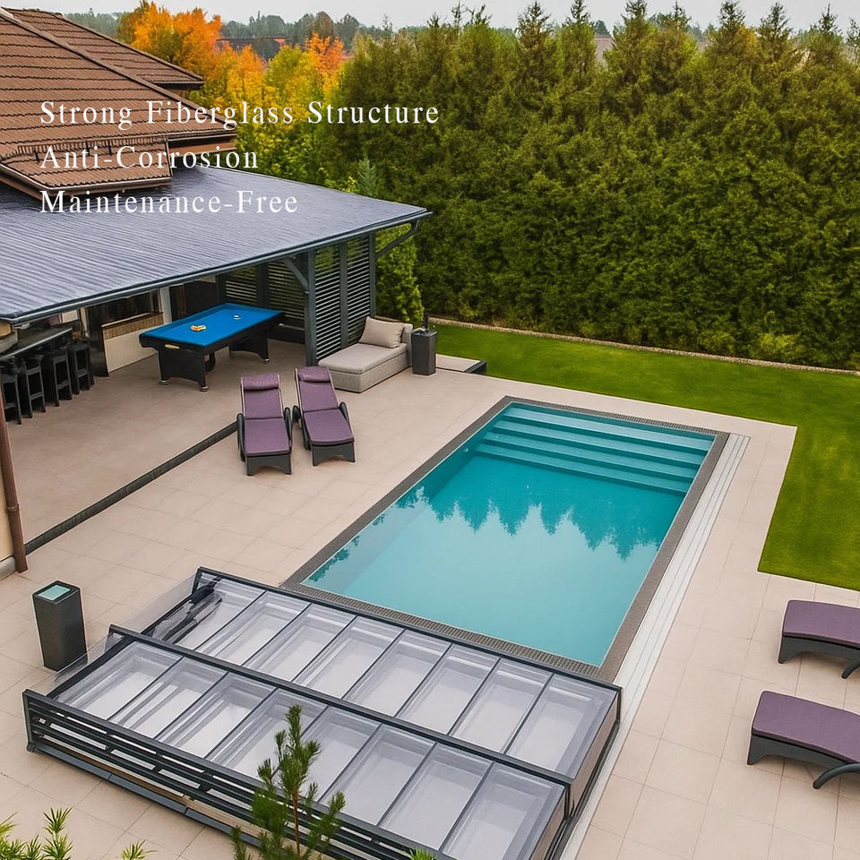 Piscina de Fibra de Vidrio Personalizada para Uso Familiar en el Patio Trasero, Piscina Enterrada o Elevada