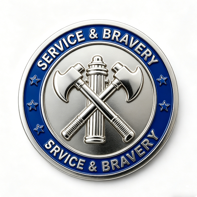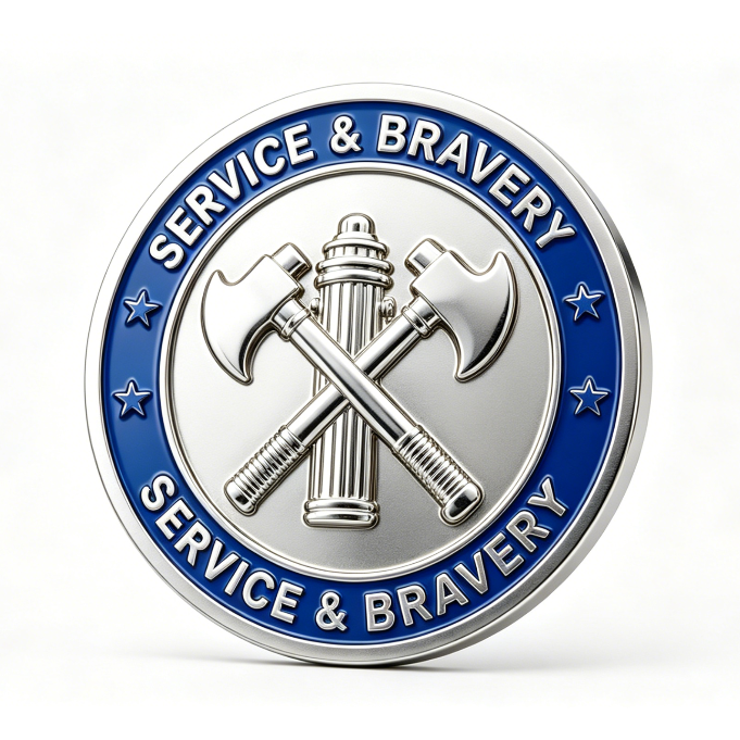 Moneda Conmemorativa Personalizada de Desafío de Bomberos, Plateada, Impresa con UV, de Doble Cara, Coleccionable, de Metal, con Hacha y Hidrante