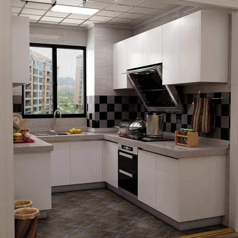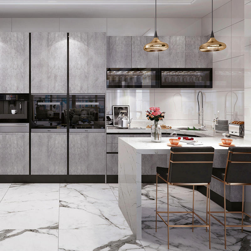 Muebles de cocina ignífugos personalizados, armario de cocina modular con acabado de alto brillo