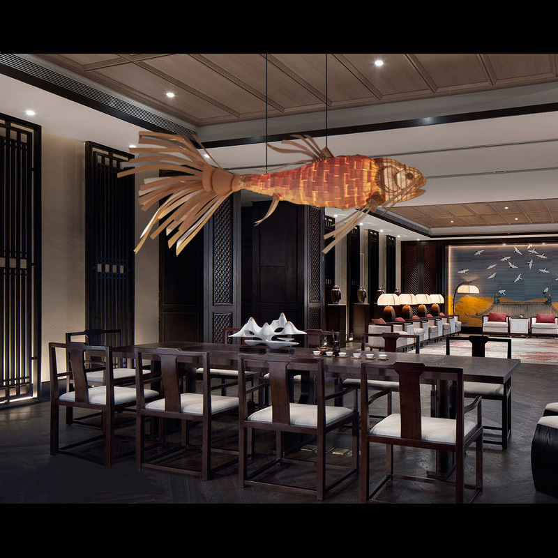 Candelabro en forma de pez personalizado restaurante Hotel arte carpa linterna modelado decoración interior Villa Bar luz colgante de madera
