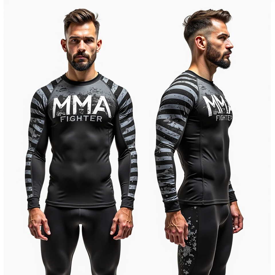 Ajuste personalizado Athletic Rash Guard Compresión Manga completa y corta Ropa de entrenamiento MMA Gear kimono de jiu jitsu