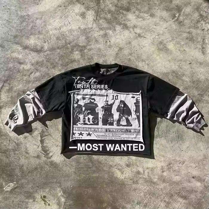 Camiseta térmica de manga larga de doble capa recortada de gran tamaño con ajuste personalizado, camiseta doble con logotipo estampado gráfico de peso pesado 300 GSM