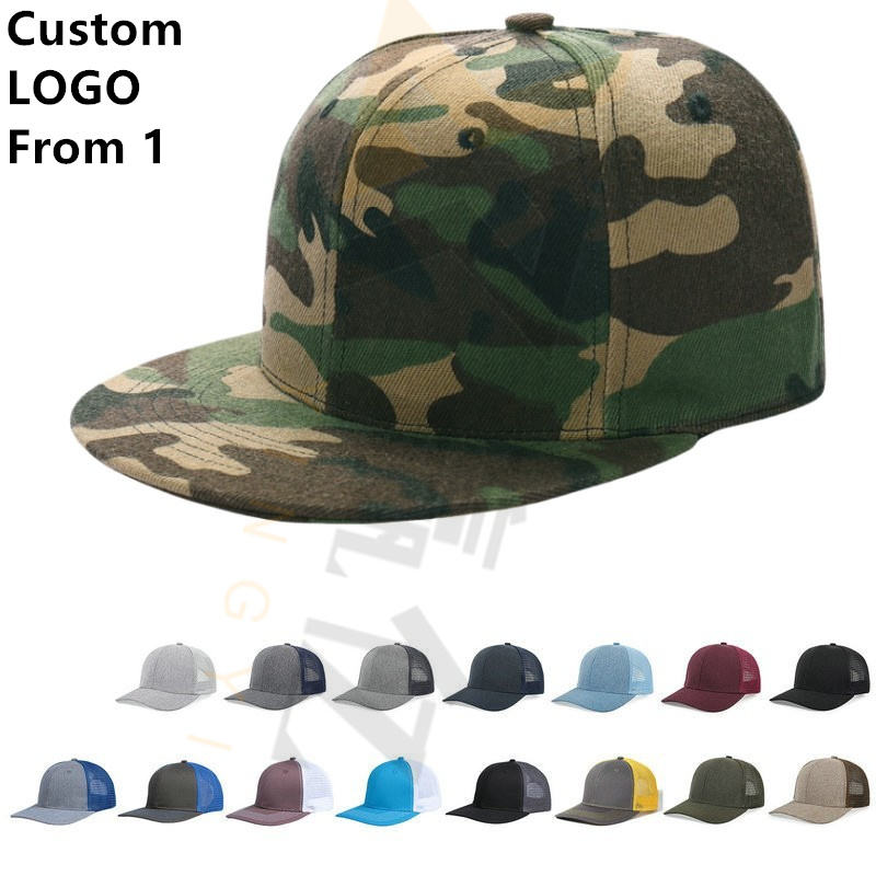 Gorra Plana Personalizada, Gorra de Béisbol Cubana, Gorras Cadet en Tela de Camuflaje con Impresión y Logotipo Bordado