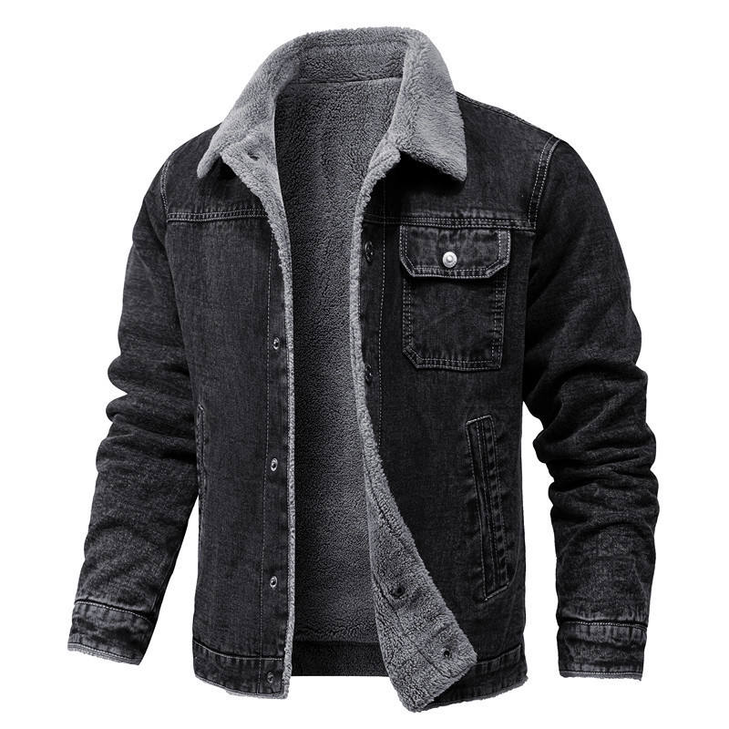 Chaqueta vaquera gruesa con bolsillos de lana personalizada para hombre, chaquetas para hombre
