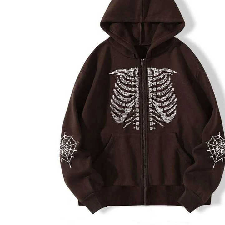 Sudaderas con capucha personalizadas de vellón plateado con diamantes de imitación para hombre, sudaderas con cremallera y bordado de diamantes de imitación con estampado abullonado de alta calidad