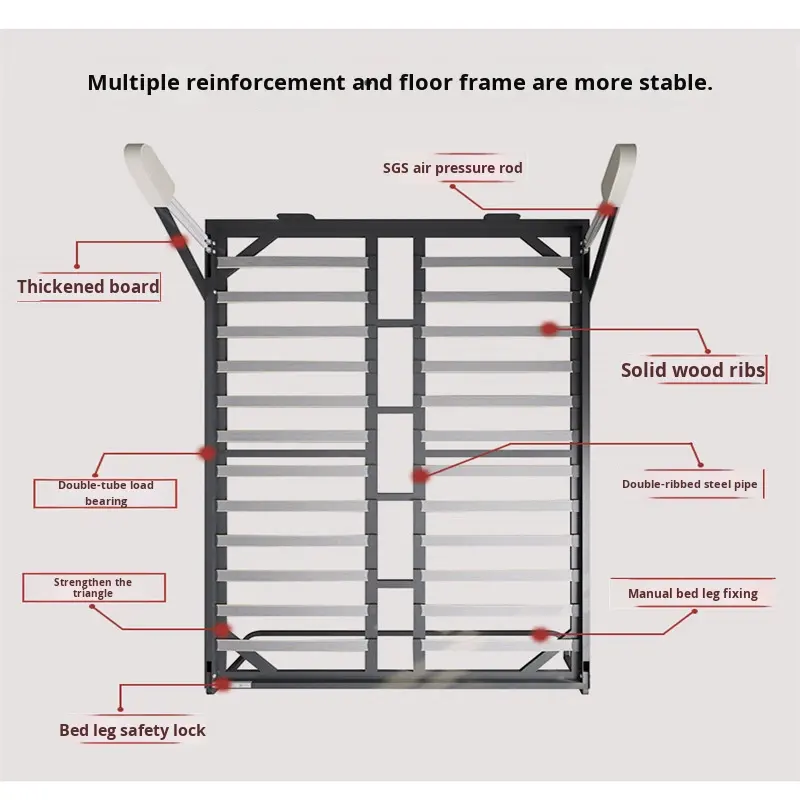 Accesorios de Herraje Metálico para Cama Plegable Invisible Montada en la Pared, Cama Murphy Oculta Plegable para Tamaño Individual/Doble