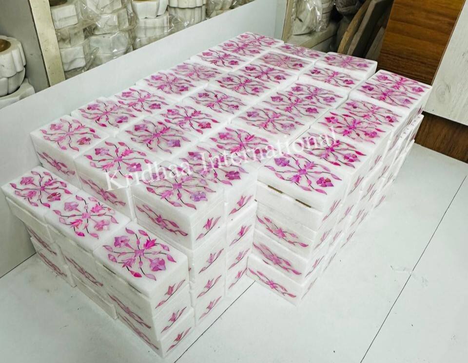 Joyero Personalizado con Incrustaciones de Hueso Floral, Caja de Mármol Altamente Artesanal con Mezcla de Nácar, Disponible en Varios Tamaños, Diseños India