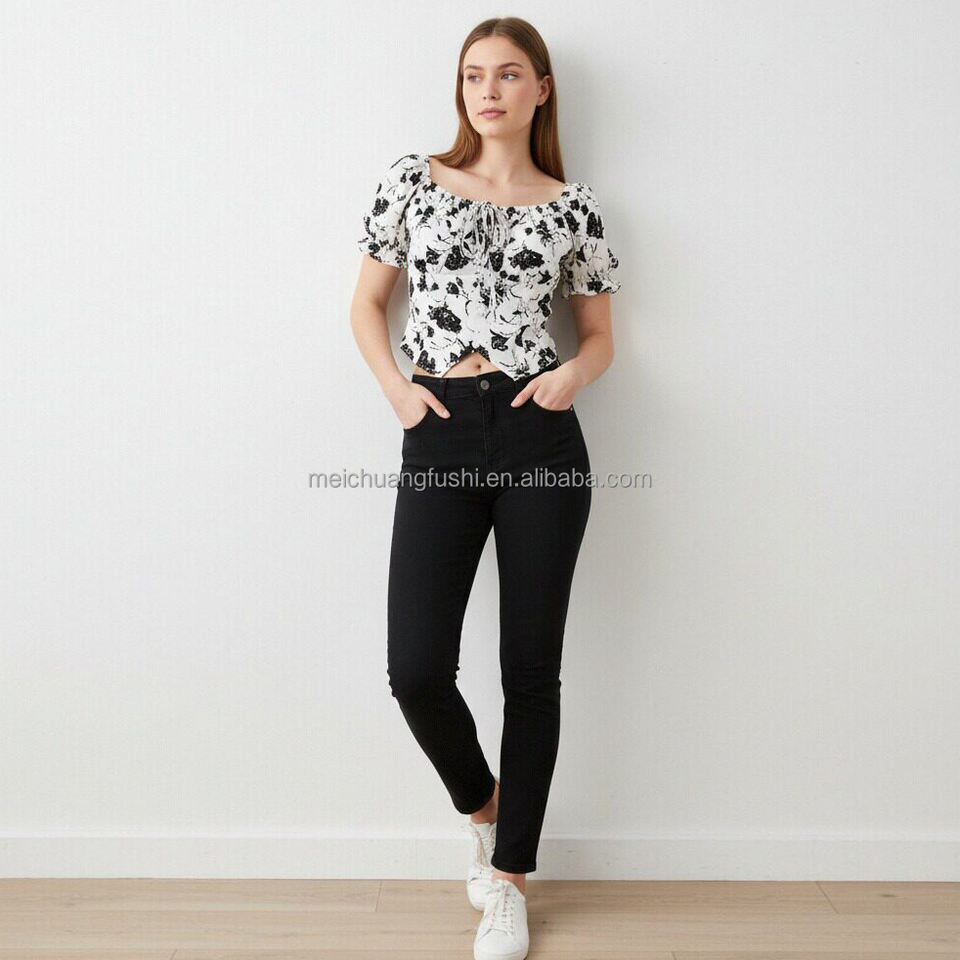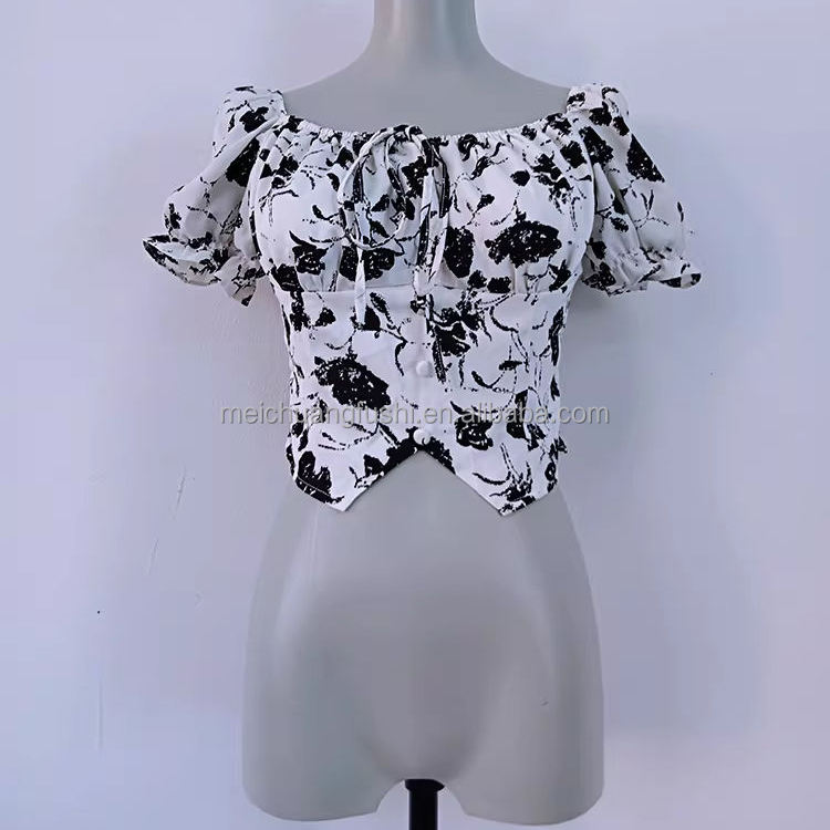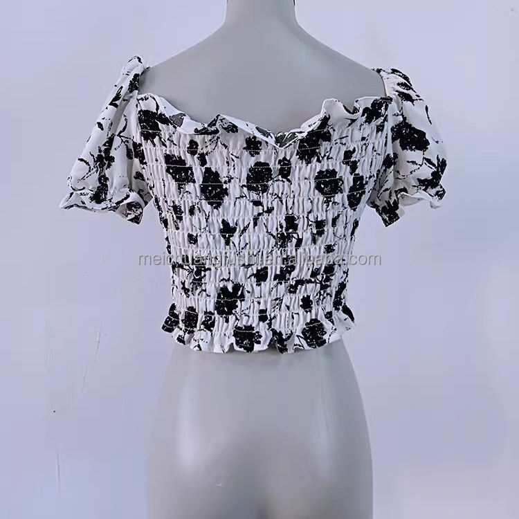 Top Corto Estilo Bustier con Estampado Floral Personalizado para Mujer, Blusa Fruncida para Damas