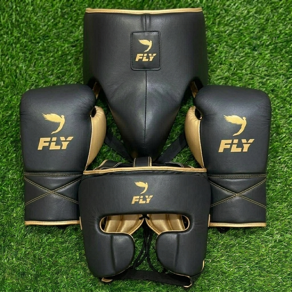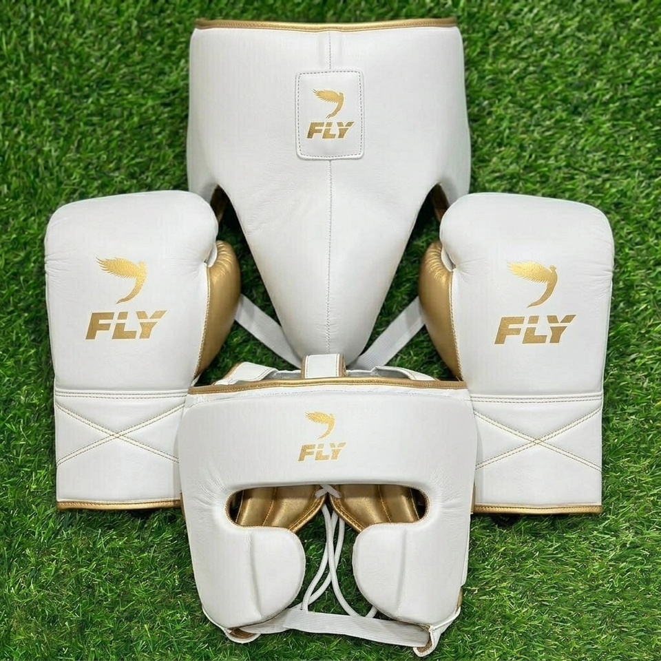 Juego de Guantes de Boxeo Personalizados Fly Superlace X 2, Guantes de Cuero Vacuno de Primera Calidad, Protector de Cabeza, Protector Inguinal, Kit de Protección