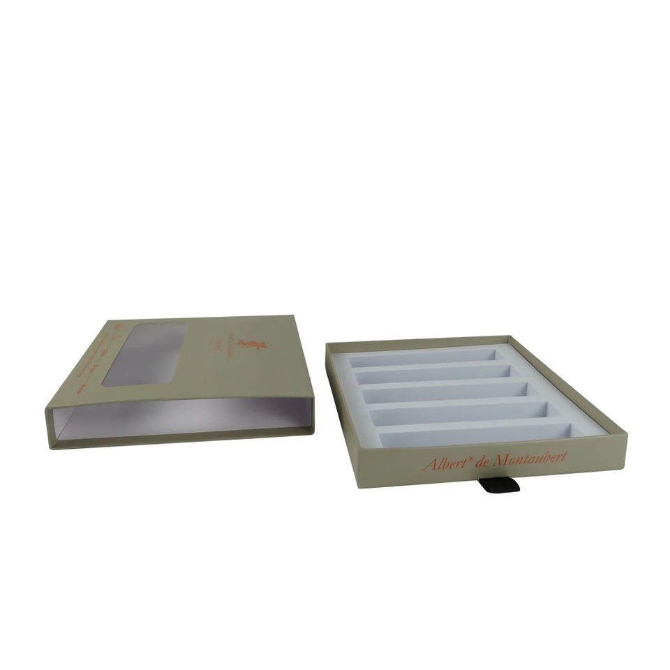 Caja de regalo rígida con forma de cajón a juego con inserto de espuma personalizado con ventana de Pvc Embalaje de muestra de vino pequeño