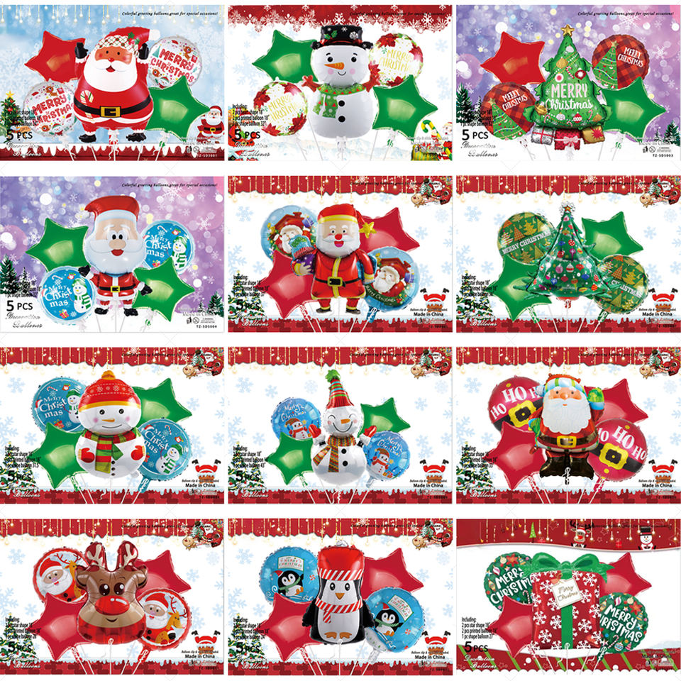 Globo de papel de aluminio personalizado de 5 piezas, traje de globo con tema navideño de Papá Noel para arreglos de festivales al aire libre para guarderías y fiestas
