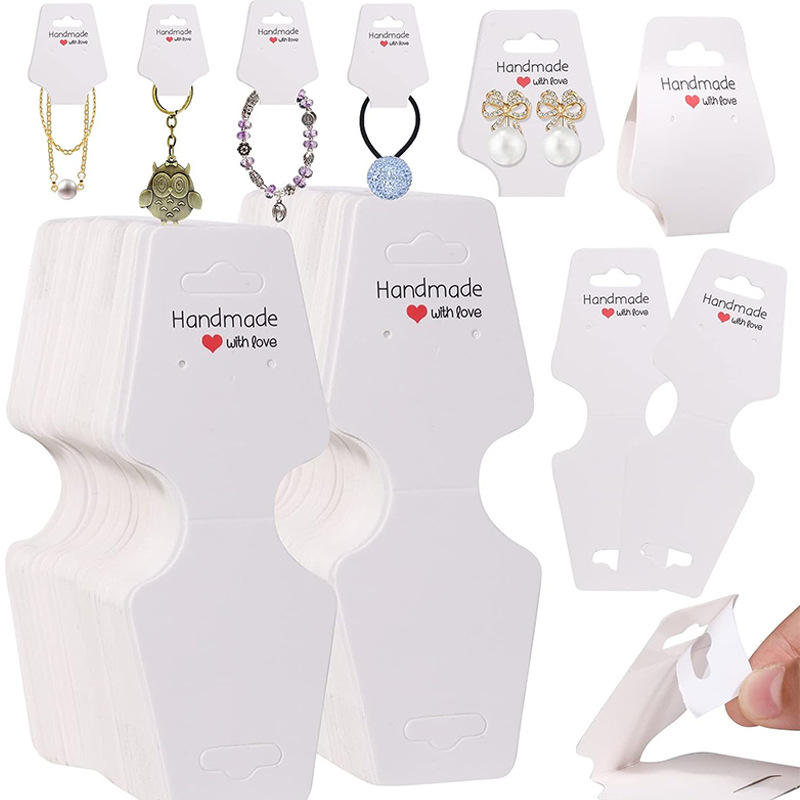 Tarjeta de papel Kraft plegable personalizada para exhibición de Joyas, etiquetas de precios para collares, pulseras, diademas y diademas, tarjeta colgante en blanco