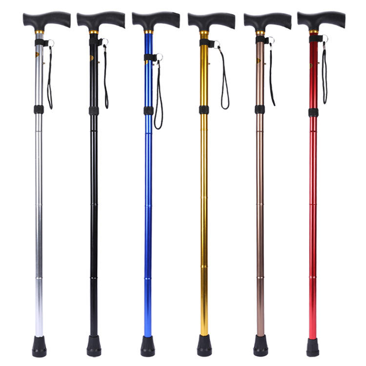 Material de aleación de aluminio: El uso de aleación de aluminio asegura que el bastón sea ligero pero resistente, lo que lo hace más fácil de manejar y transportar para los usuarios mayores.