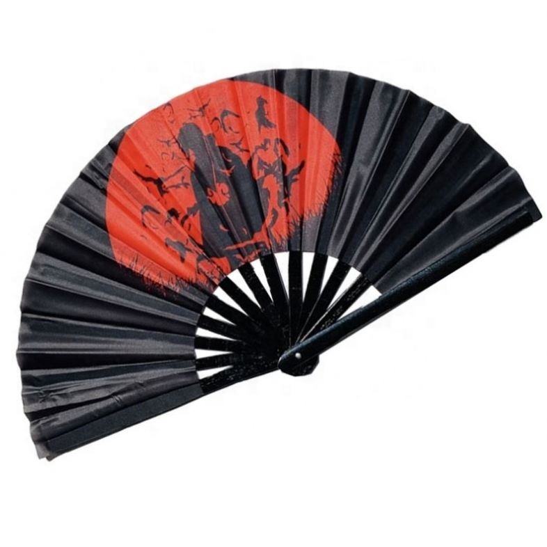 Abanico de bambú de arte popular personalizado, estilo Kung Fu grande, tallado musical, tela ecológica para promoción