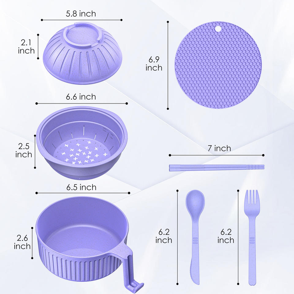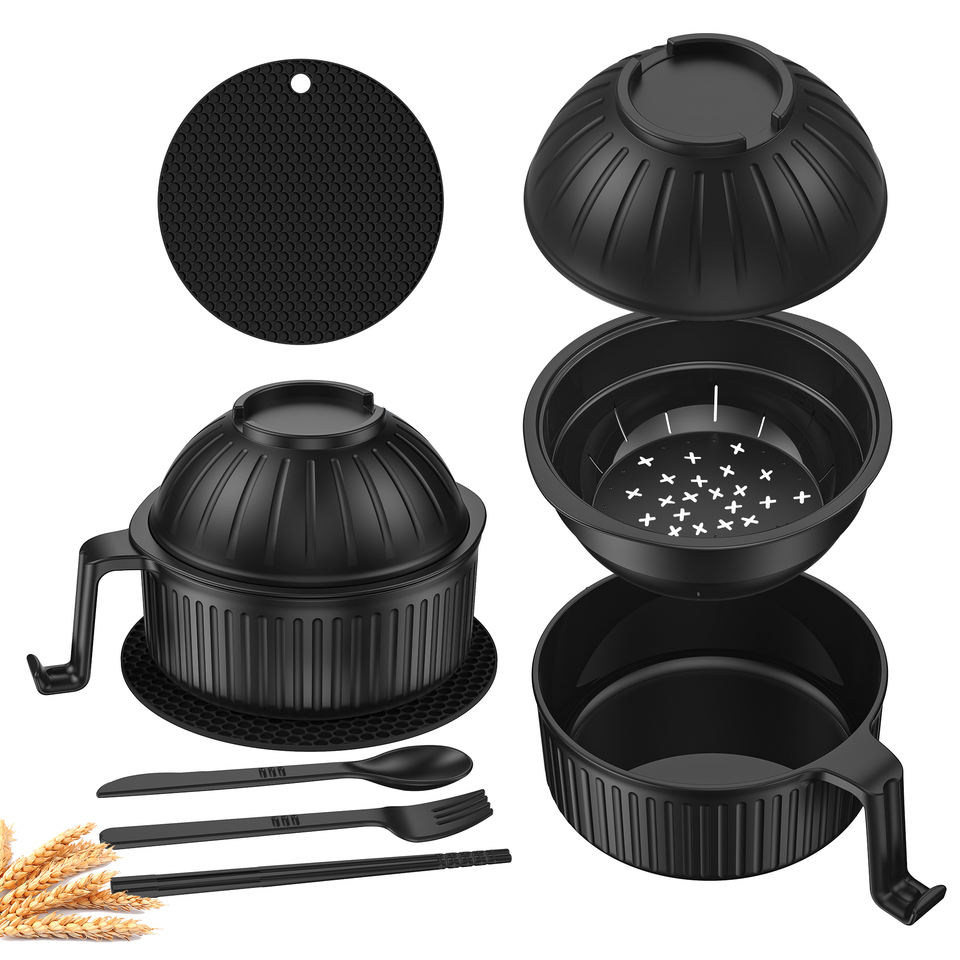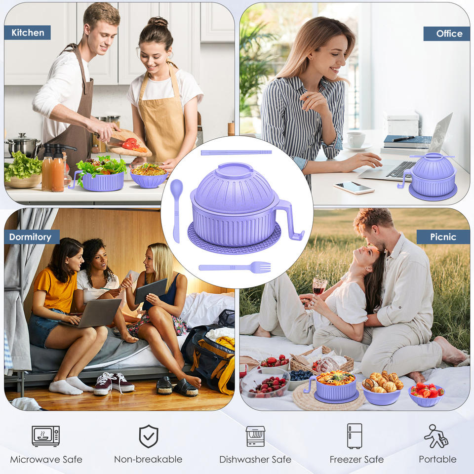 Recipientes de Plástico Personalizados para Alimentos, Juego de Tazones de Almacenamiento, Tazón Único para Fideos Instantáneos, Cereales, Ramen de Paja de Trigo con Palillos