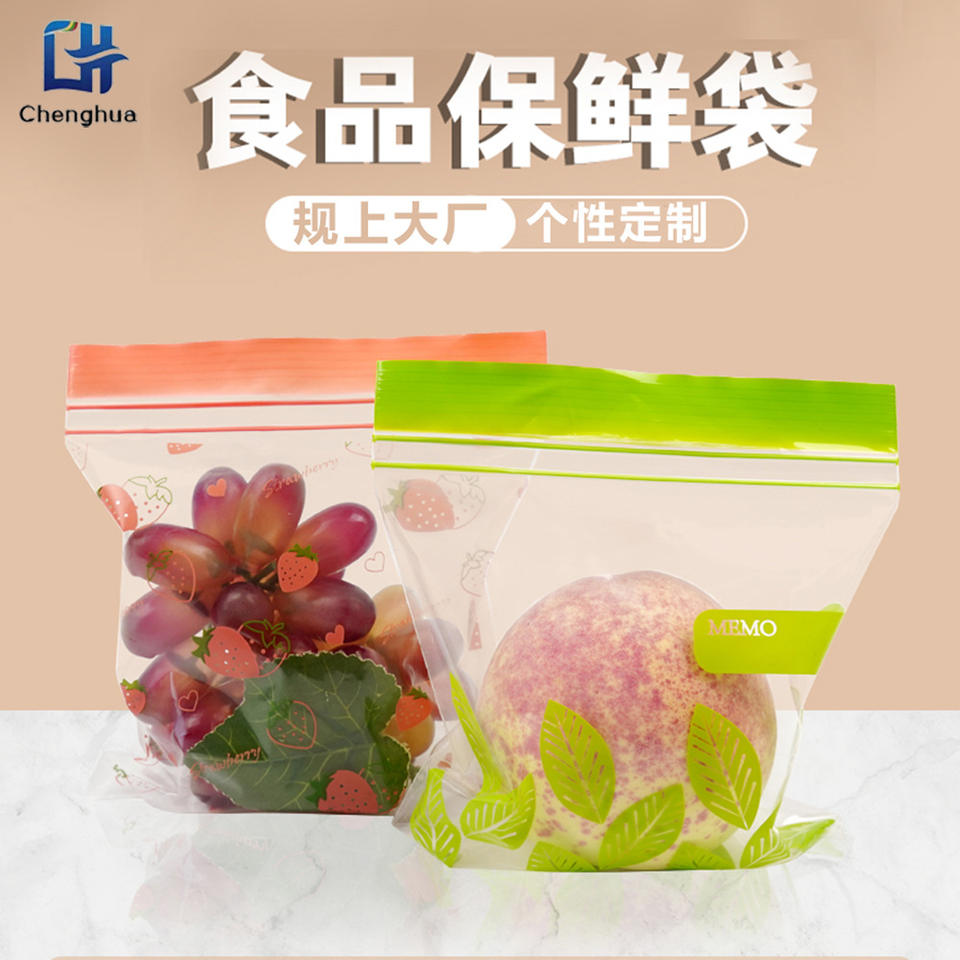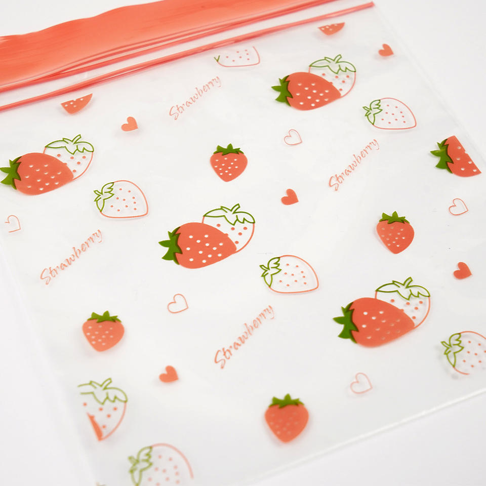 Custom Food Storage Bags Transparent Sealing Refrigerator Grade PE Material With Strawberry Print For Fruit Preservation