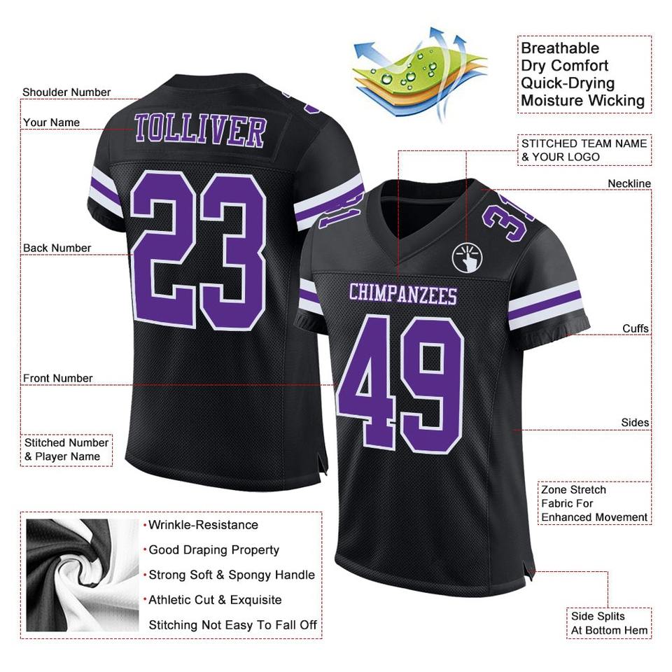 Uniforme de Fútbol Personalizado de Primera Calidad | Balón de Fútbol Auténtico Personalizado de Malla Negra, Morada y Blanca del Fabricante EM&OD M