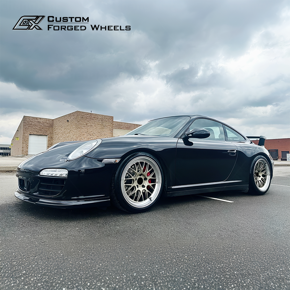 Rines Forjados Personalizados con Bloqueo Central 18x9 17x8.5 5x130 Diseño de Malla Dorada Brillante Estilo Motorsport para Porsche 911 GT3