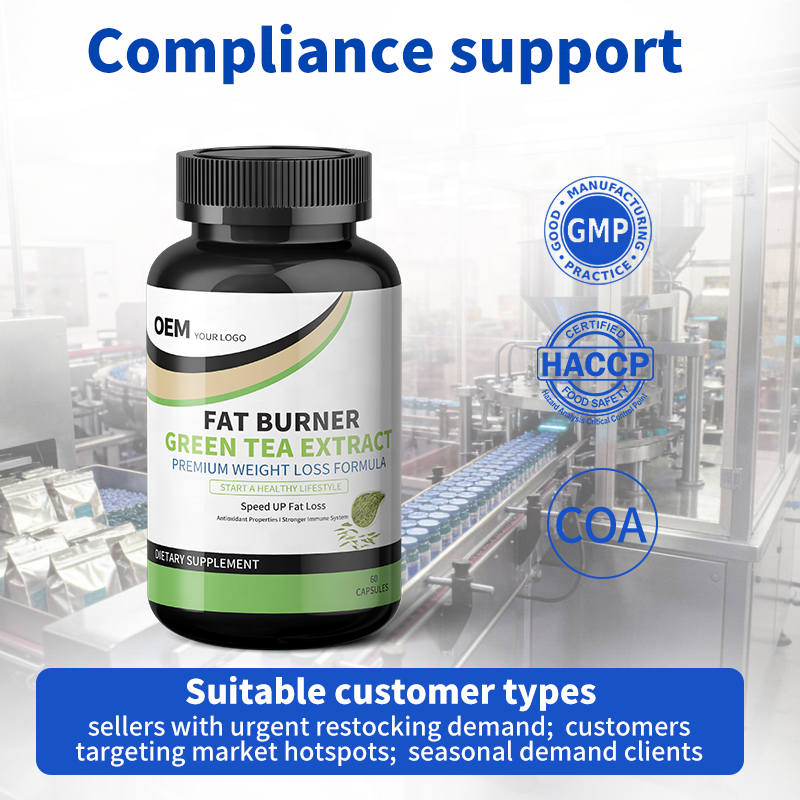 Cápsulas de Extracto de Té Verde Orgánico con Fórmula y Empaque Personalizados, Suplementos Naturales Quemagrasas, Ventaja de Costo al por Mayor y Suministro Estable