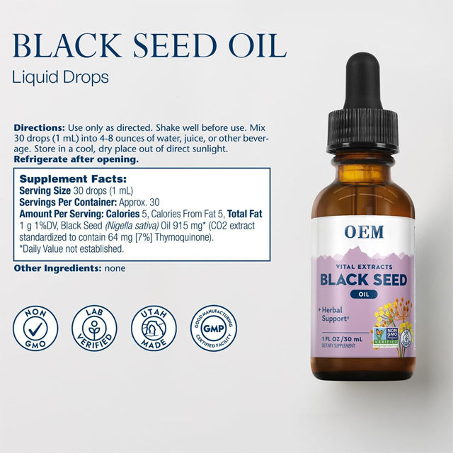 Nombre del producto:Gotas líquidas de aceite de semilla negro OEM