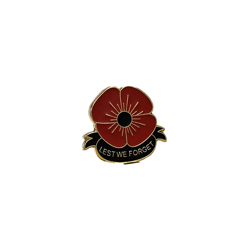 Emblemas de insignia chapados en oro de esmalte suave de aleación de Zinc Pin de solapa de Amapola roja con logotipo personalizado gratuito