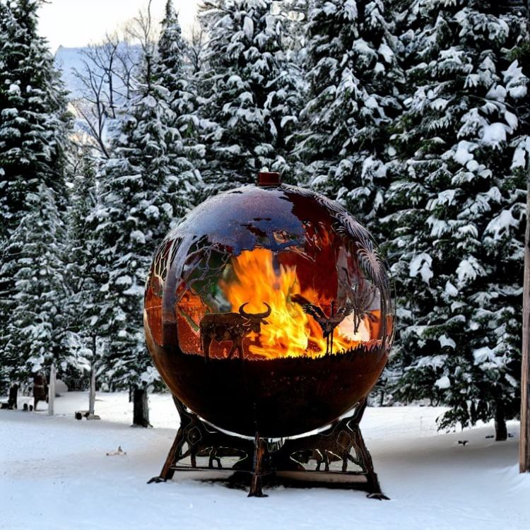 Brasero de Leña Personalizado, Independiente, Rústico y Ecológico, de Acero Corten con Acabado Oxidado para Decoración de Jardín
