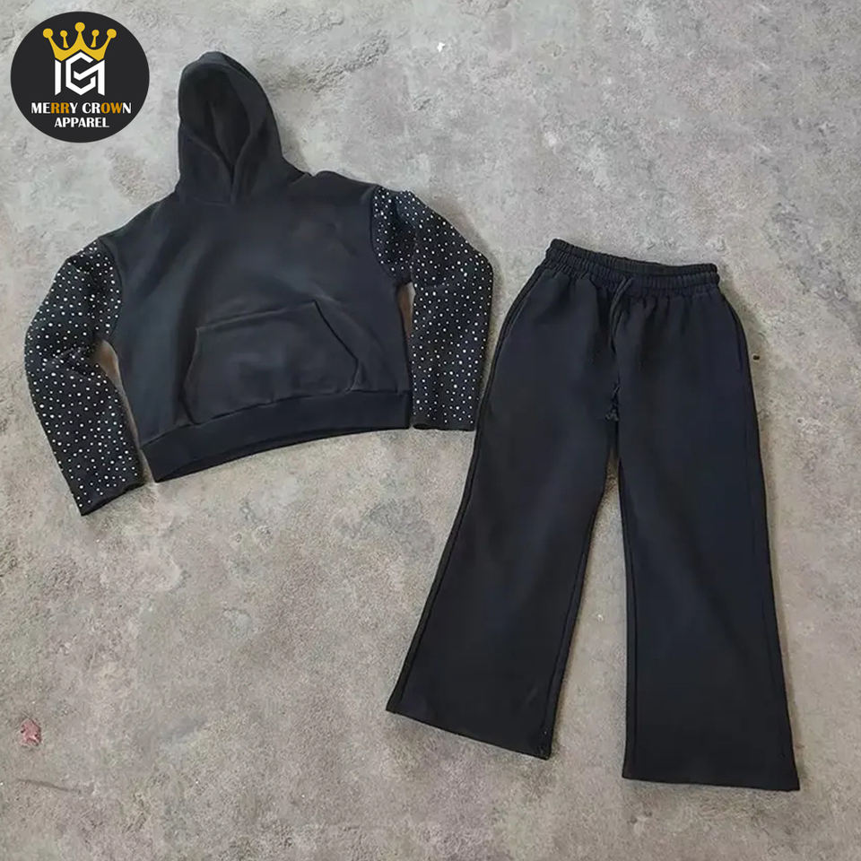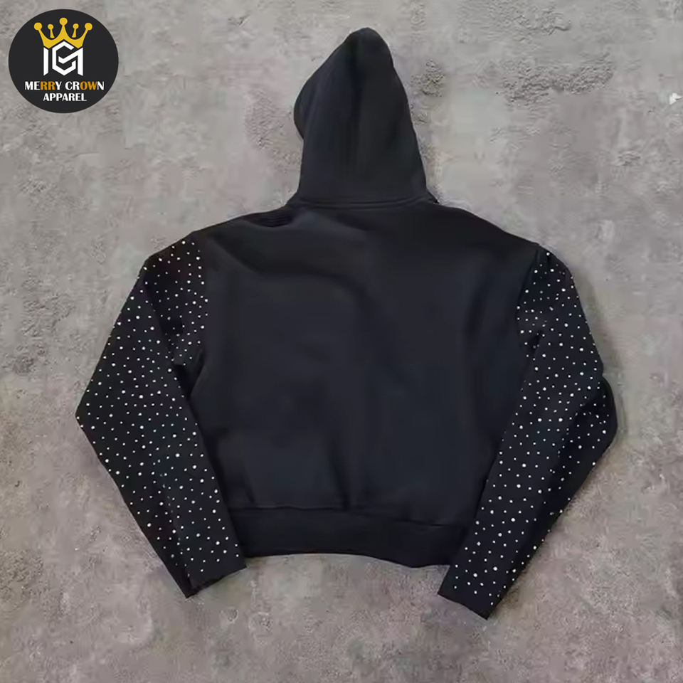 Custom French Terry 100% algodón strass Sudadera con capucha pantalones de chándal de gran tamaño conjunto de pantalones de chándal con cremallera Boxy Fit chándal para hombres