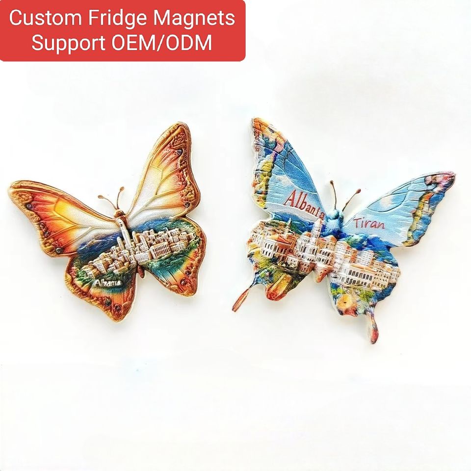 Imán de Refrigerador Personalizado, Imán de Resina 3D, Imán de Refrigerador de Albania, Diseño de Mariposa de Tirana, Recuerdo de Viaje, Regalo Promocional