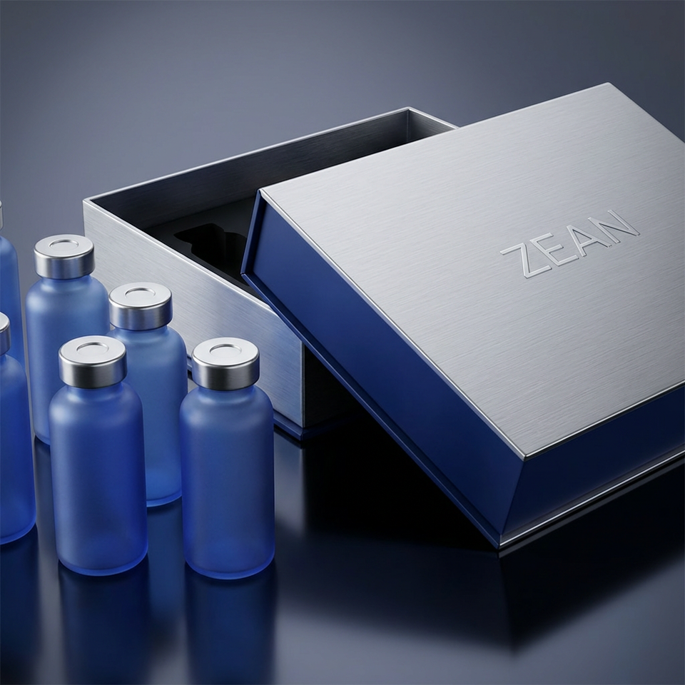 Etiquetas Personalizadas para Frascos de Vidrio Azul Esmerilado de 10 ml, Adhesivos para Envases de Fórmula Antienvejecimiento Liposomal