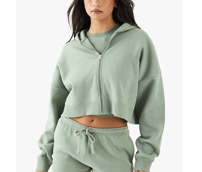 Sudadera con Capucha Corta Personalizada con Estampado 3D Puff, ODM, Algodón, Otoño, Hombros Caídos, Sudadera con Capucha de Manga Larga para Mujer, Estilo Hip Hop Urbano