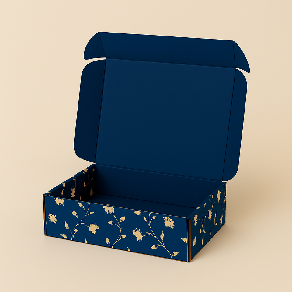 Caja de Cartón Corrugado Personalizada a Todo Color con Recubrimiento UV y Lámina Dorada para Regalos - Materiales Reciclados