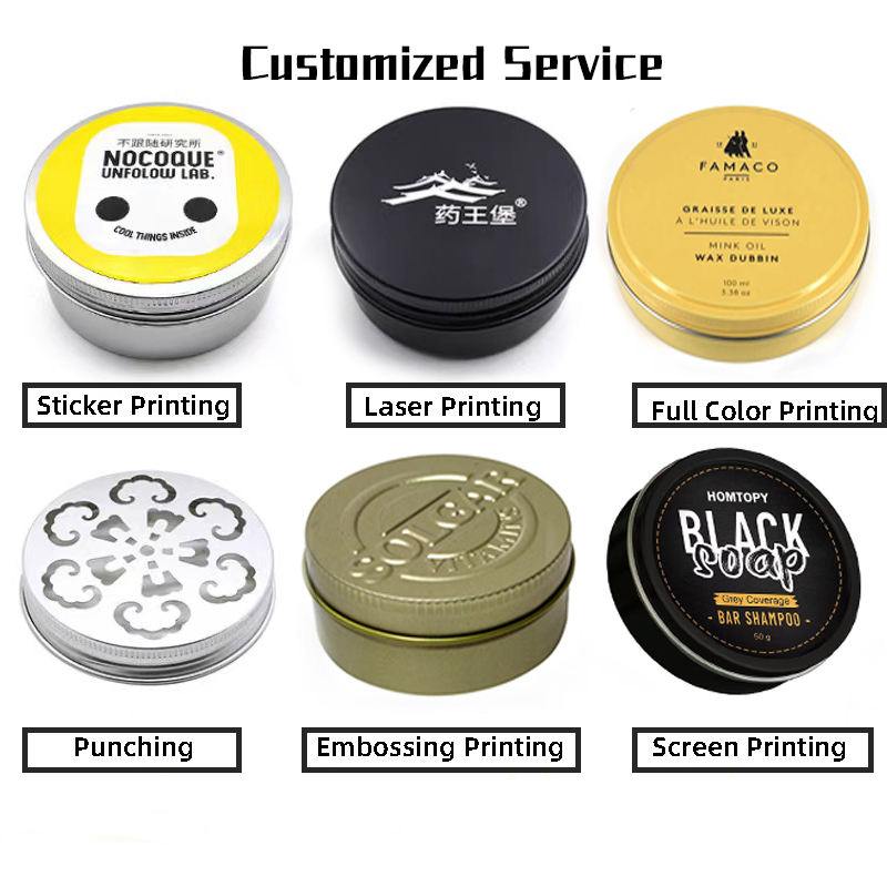 Impresión personalizada a todo color cosmética Pequeña barra de champú redonda lata aluminio metal tarro contenedor olla