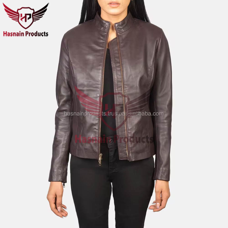 Chaqueta de cuero sólido de manga larga personalizada para mujer tela impresa con logotipo de diseño OEM chaqueta de moda