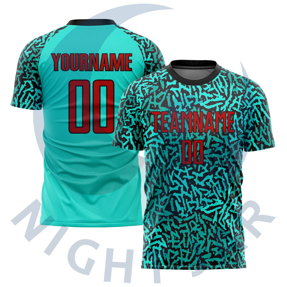 Camisetas de Fútbol Personalizadas con Sublimación Completa, 100% Poliéster, Ligeras, Cuello en V, Manga Corta, Secado Rápido y Transpirables