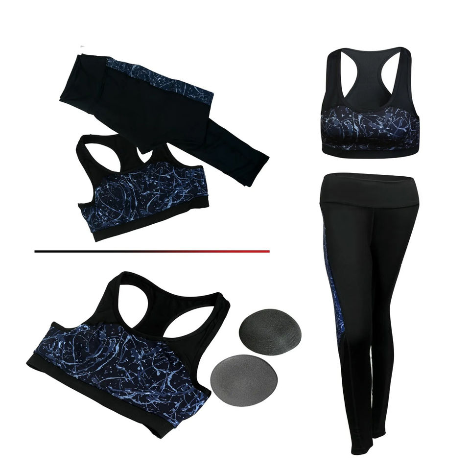 Conjunto completo personalizado de sublimación para yoga, tejido elástico de cuatro vías, ropa deportiva informal de cintura alta, mallas, sujetador talla XS con logotipo en la cintura