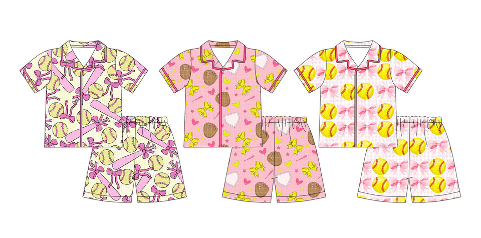 Conjuntos de Pijamas de 2 Piezas para Niñas con Estampado de Lazos de Softbol para el Día del Partido, Ropa de Dormir para Niñas, Conjuntos de Ropa Infantil Bonitos