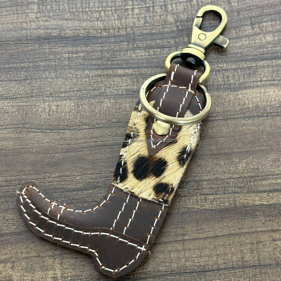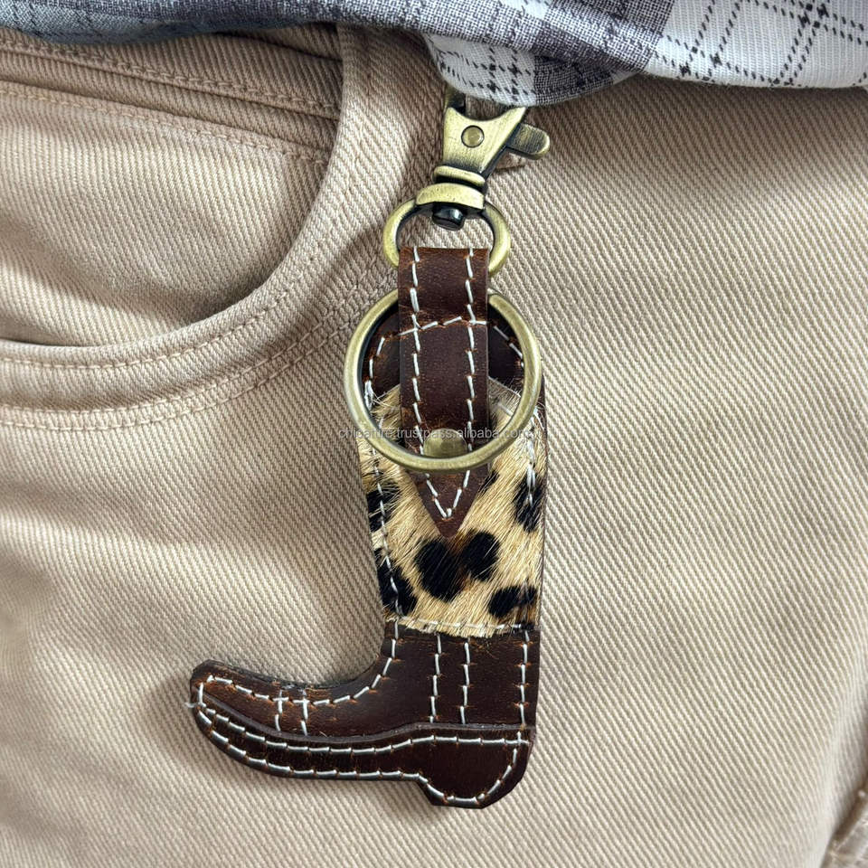 Llavero de Cuero Vacuno Genuino Personalizado con Anillo Metálico Resistente, Diseño de Estampado Animal, Accesorio de Moda Rústico