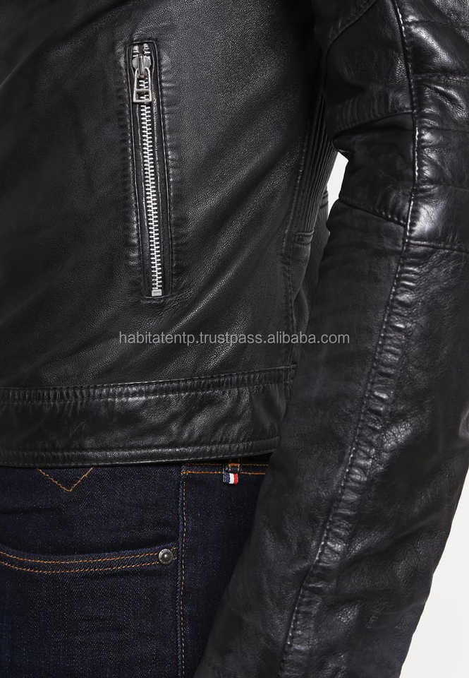Chaquetas de piel de cordero auténtica para hombre, personalizadas, de cuero negro