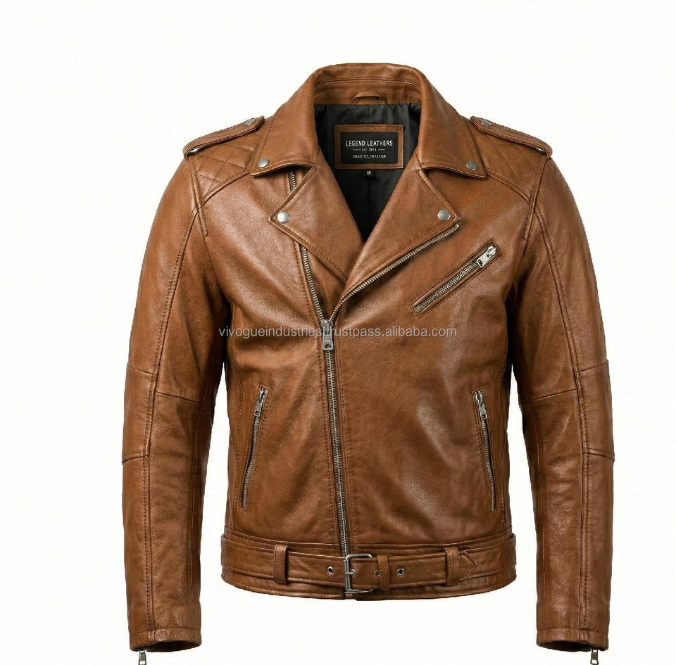 Chaqueta de Cuero Genuino de Piel de Oveja Color Bronceado, Cuello Alto, Impermeable, Transpirable, Estilo Motero, Hecha en Pakistán