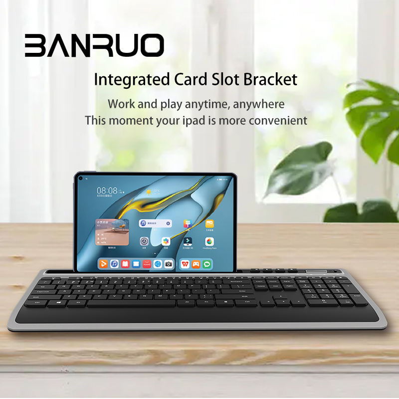 Teclado ergonómico inalámbrico personalizado de Alemania, Francia y España para oficina, teclado y ratón multimedia con ranura