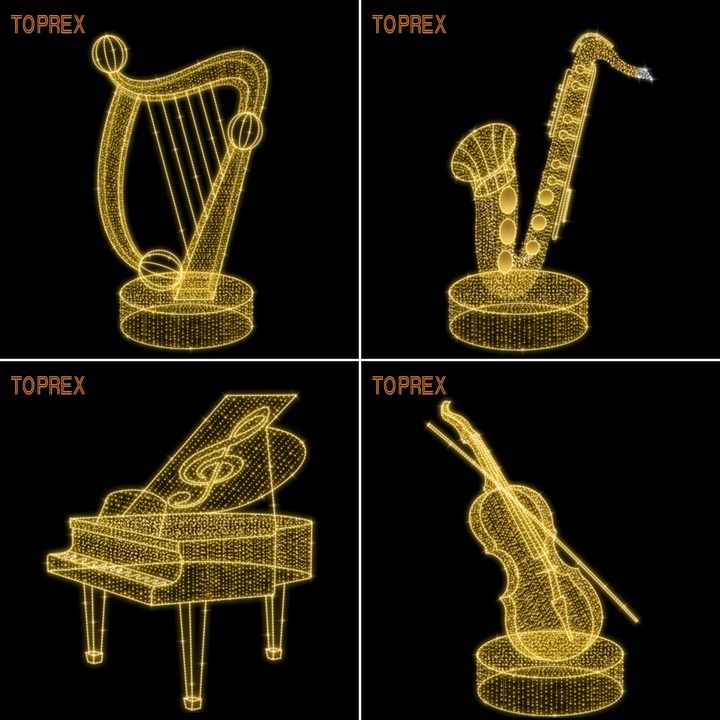 Escultura Luminosa Artística LED 3D Gigante Personalizada de Instrumentos Musicales, Silueta de Violín, Arpa, Piano, Decoración para el Día de Año Nuevo