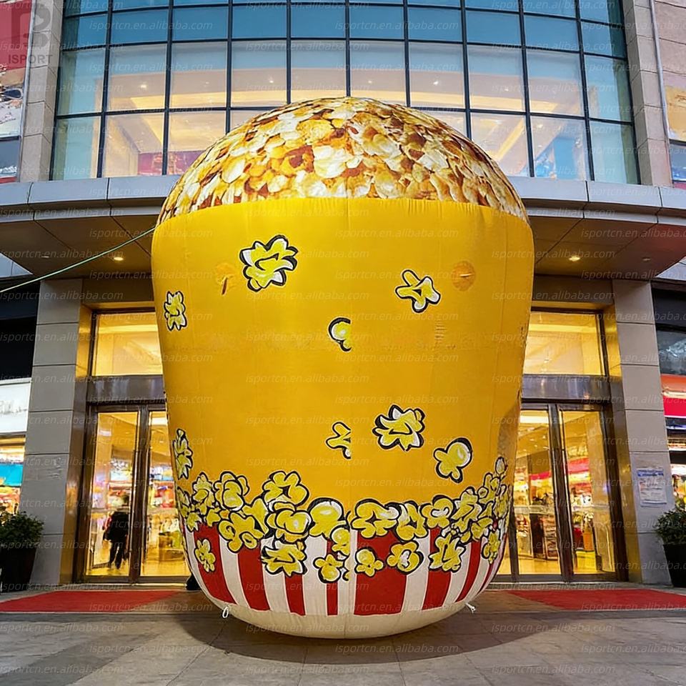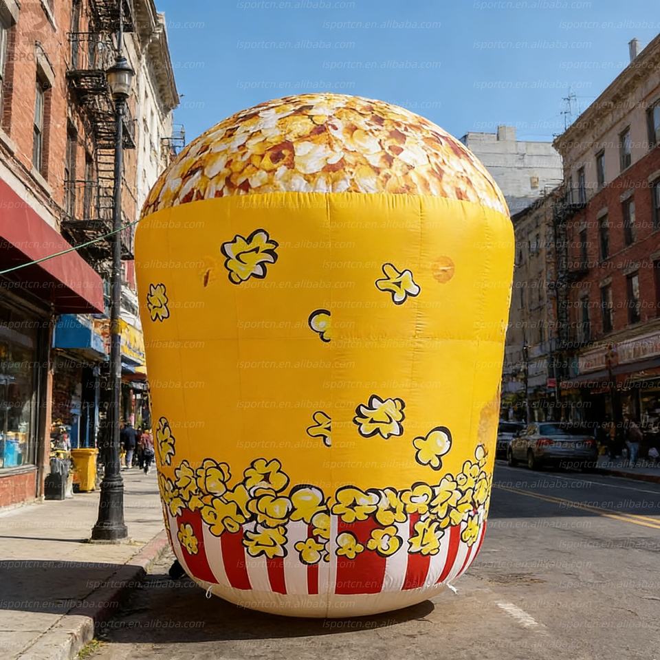 Modelo inflable gigante de palomitas de maíz con luces LED personalizado, cubo de palomitas inflable iluminado para decoración de cines/eventos/centros comerciales/festivales